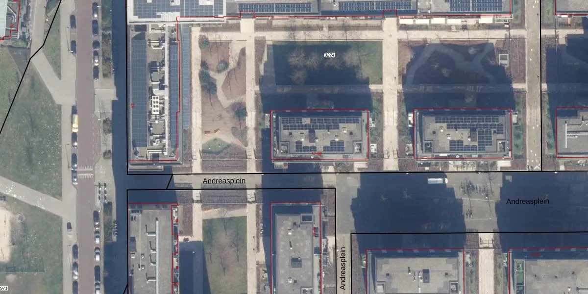 Het perceel waarop Andreasplein 51 staat heeft een oppervlakte van 9895 m². Dit is een zeer groot perceel. De perceeloppervlakte wordt geregistreerd door het Kadaster. Gedetailleerde informatie over de maten van dit perceel kunt u vinden in het rapport Kadastrale kaart met maatvoering van Andreasplein 51.