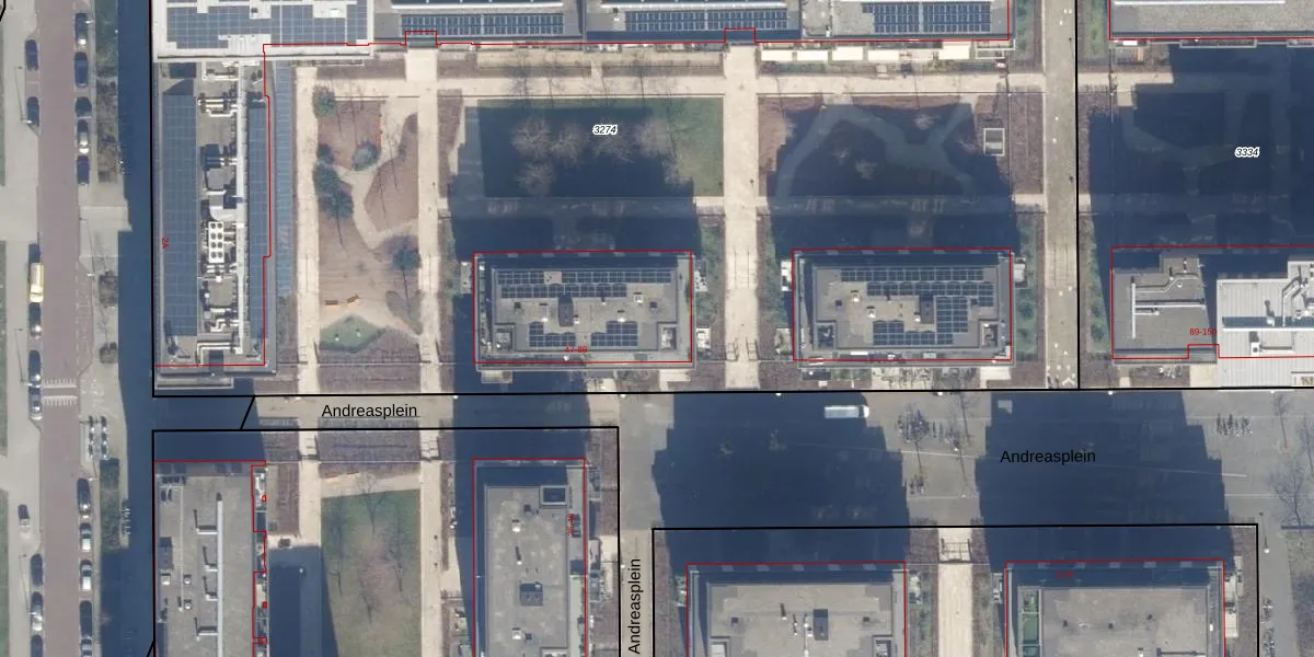 Het perceel waarop Andreasplein 66 staat heeft een oppervlakte van 9895 m². Dit is een zeer groot perceel. De perceeloppervlakte wordt geregistreerd door het Kadaster. Gedetailleerde informatie over de maten van dit perceel kunt u vinden in het rapport Kadastrale kaart met maatvoering van Andreasplein 66.