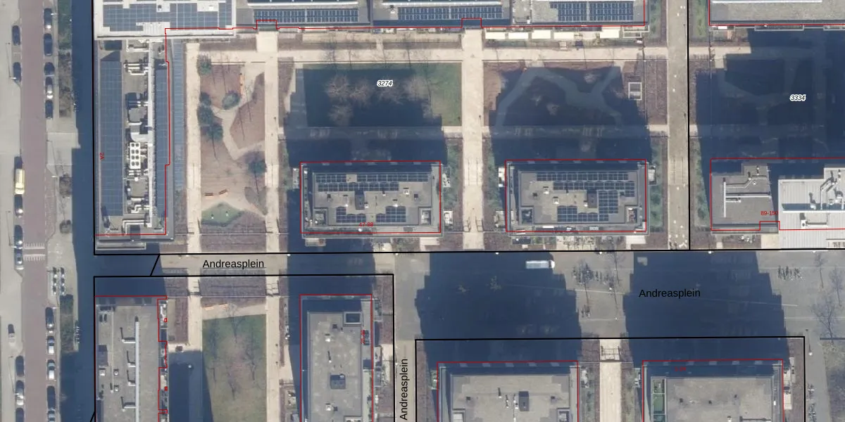 Het perceel waarop Andreasplein 67 staat heeft een oppervlakte van 9895 m². Dit is een zeer groot perceel. De perceeloppervlakte wordt geregistreerd door het Kadaster. Gedetailleerde informatie over de maten van dit perceel kunt u vinden in het rapport Kadastrale kaart met maatvoering van Andreasplein 67.