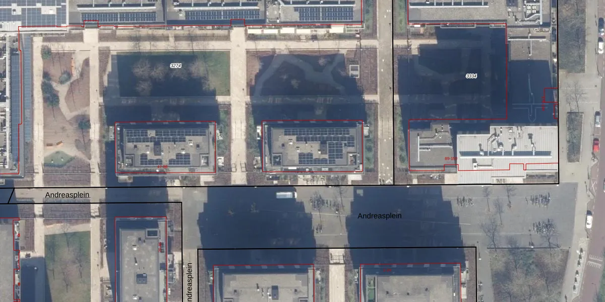 Het perceel waarop Andreasplein 76 staat heeft een oppervlakte van 9895 m². Dit is een zeer groot perceel. De perceeloppervlakte wordt geregistreerd door het Kadaster. Gedetailleerde informatie over de maten van dit perceel kunt u vinden in het rapport Kadastrale kaart met maatvoering van Andreasplein 76.