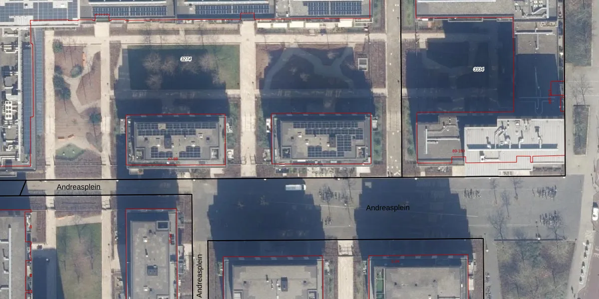Het perceel waarop Andreasplein 83 staat heeft een oppervlakte van 9895 m². Dit is een zeer groot perceel. De perceeloppervlakte wordt geregistreerd door het Kadaster. Gedetailleerde informatie over de maten van dit perceel kunt u vinden in het rapport Kadastrale kaart met maatvoering van Andreasplein 83.