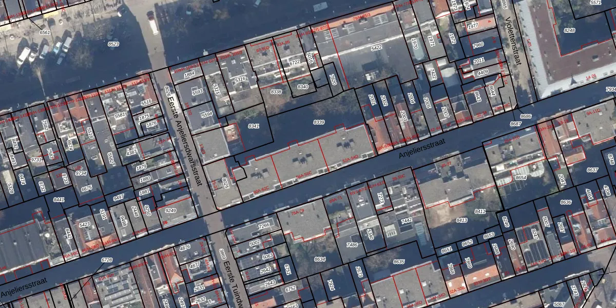 Het perceel waarop Anjeliersstraat 56-C staat heeft een oppervlakte van 927 m². Dit is een groot perceel. De perceeloppervlakte wordt geregistreerd door het Kadaster. Gedetailleerde informatie over de maten van dit perceel kunt u vinden in het rapport Kadastrale kaart met maatvoering van Anjeliersstraat 56-C.