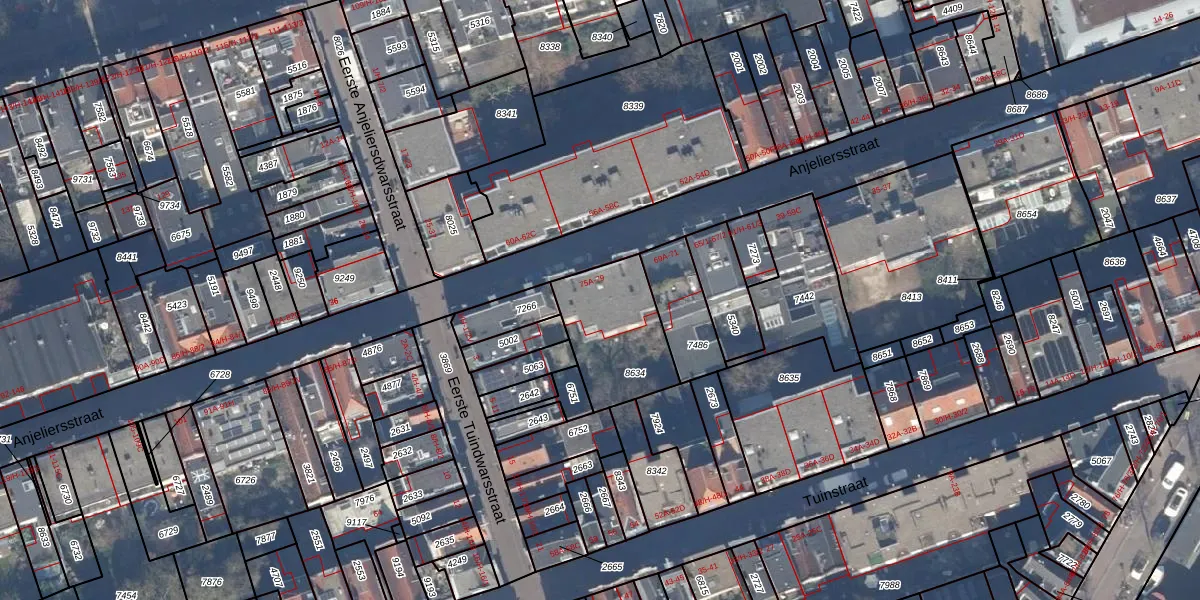 Het perceel waarop Anjeliersstraat 77-A staat heeft een oppervlakte van 367 m². Dit is een groot perceel. De perceeloppervlakte wordt geregistreerd door het Kadaster. Gedetailleerde informatie over de maten van dit perceel kunt u vinden in het rapport Kadastrale kaart met maatvoering van Anjeliersstraat 77-A.