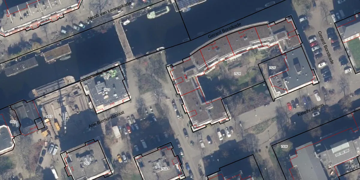 Het perceel waarop het adres ligt is ASD13-Q-7524. De afkorting 'ASD13' staat voor kadastrale gemeente Amsterdam. Het perceel is met 2165 m² relatief groot. Het gemiddelde ligt in de kadastrale gemeente Amsterdam op 393,94 m². Het grootste perceel in de kadastrale gemeente is 6,2 ha. Het kleinste perceel heeft een oppervlakte van 1 m². Op het perceel liggen in totaal 64 adressen. In de Basisregistratie Kadaster (BRK) werden de grenzen van het perceel geregistreerd op 03-11-2006.