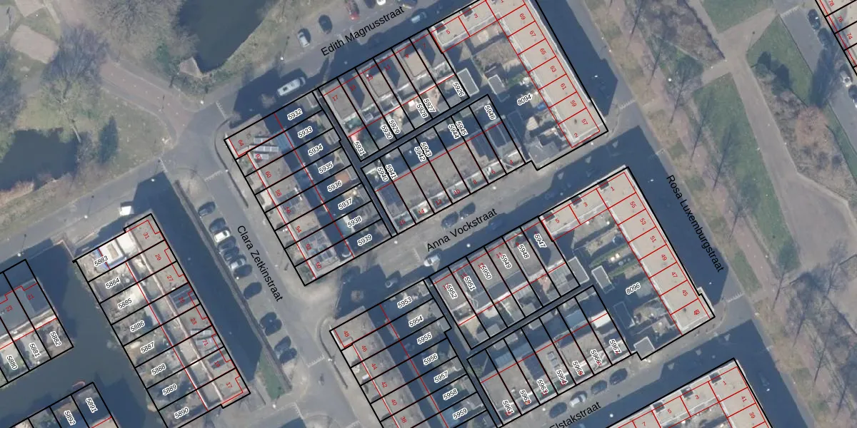 Het perceel waarop Anna Vockstraat 14 staat heeft een oppervlakte van 86 m². Dit is een klein perceel. De perceeloppervlakte wordt geregistreerd door het Kadaster. Gedetailleerde informatie over de maten van dit perceel kunt u vinden in het rapport Kadastrale kaart met maatvoering van Anna Vockstraat 14.