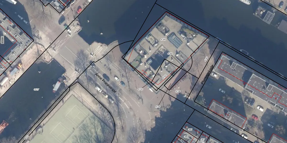 Anne Frankstraat 43 is gelegen op kadastraal perceel ASD11O4744. Deze kadastrale aanduiding is uniek en wordt gebruikt door het Kadaster om eigendomsrechten en andere zakelijke rechten vast te leggen. Het perceel maakt onderdeel uit van de kadastrale gemeente Amsterdam.