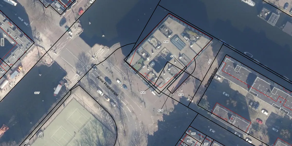 Anne Frankstraat 45 is gelegen op kadastraal perceel ASD11O4744. Deze kadastrale aanduiding is uniek en wordt gebruikt door het Kadaster om eigendomsrechten en andere zakelijke rechten vast te leggen. Het perceel maakt onderdeel uit van de kadastrale gemeente Amsterdam.