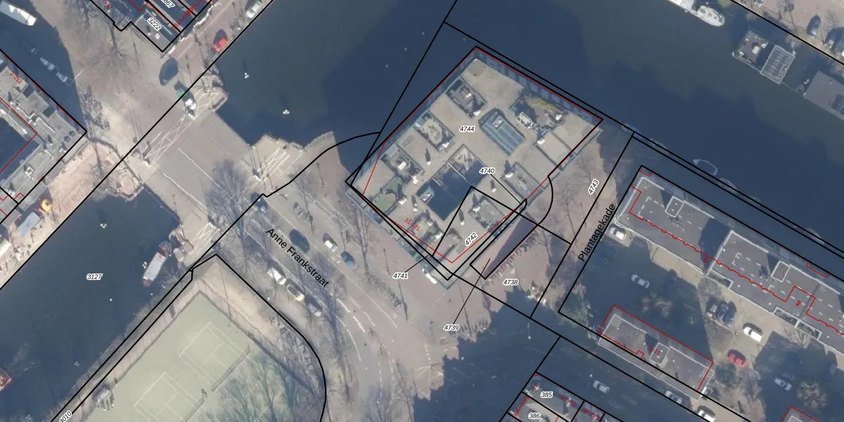 Het adres ligt op het perceel ASD11-O-4744, dat zich in de kadastrale gemeente Amsterdam bevindt. Het perceel is met 1471 m² relatief groot. Het gemiddelde ligt in de kadastrale gemeente Amsterdam op 781,11 m². Het grootste perceel in de kadastrale gemeente is 12,0 ha. Het kleinste perceel heeft een oppervlakte van 1 m². Er zijn 42 adressen aanwezig op het perceel. De huidige grenzen van het perceel zijn digitaal in de Basisregistratie Kadaster (BRK) geregistreerd op 15-12-1999.