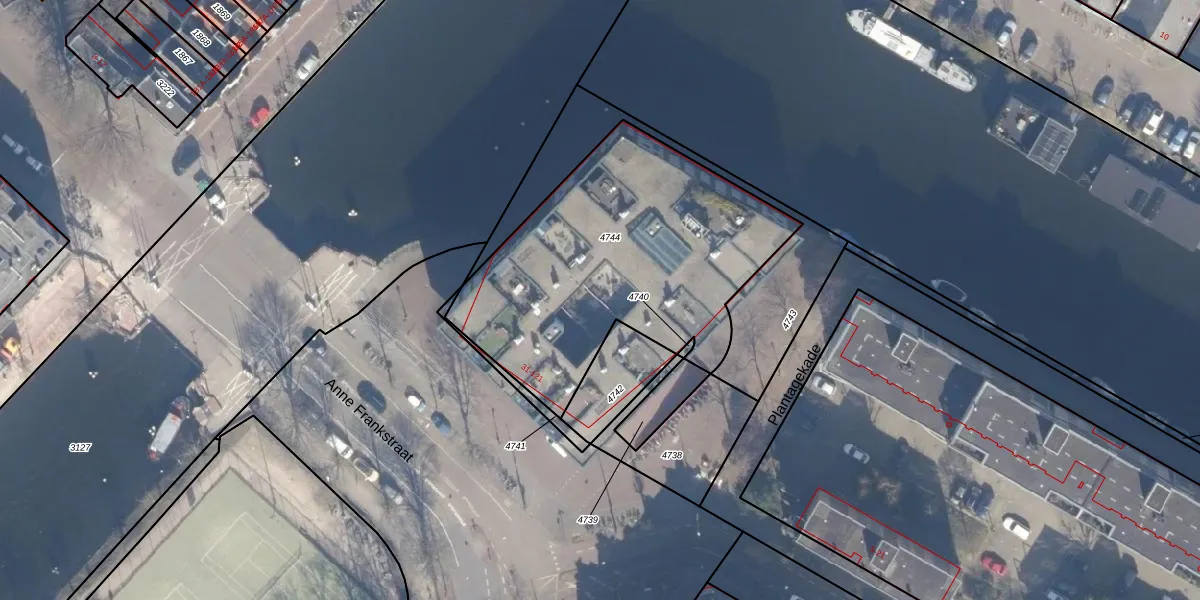 Het adres ligt op het perceel ASD11-O-4744, dat zich in de kadastrale gemeente Amsterdam bevindt. Het perceel is met 1471 m² relatief groot. Het gemiddelde ligt in de kadastrale gemeente Amsterdam op 781,11 m². Het grootste perceel in de kadastrale gemeente is 12,0 ha. Het kleinste perceel heeft een oppervlakte van 1 m². Op het perceel liggen in totaal 42 adressen. De huidige grenzen van het perceel zijn digitaal in de Basisregistratie Kadaster (BRK) geregistreerd op 15-12-1999.