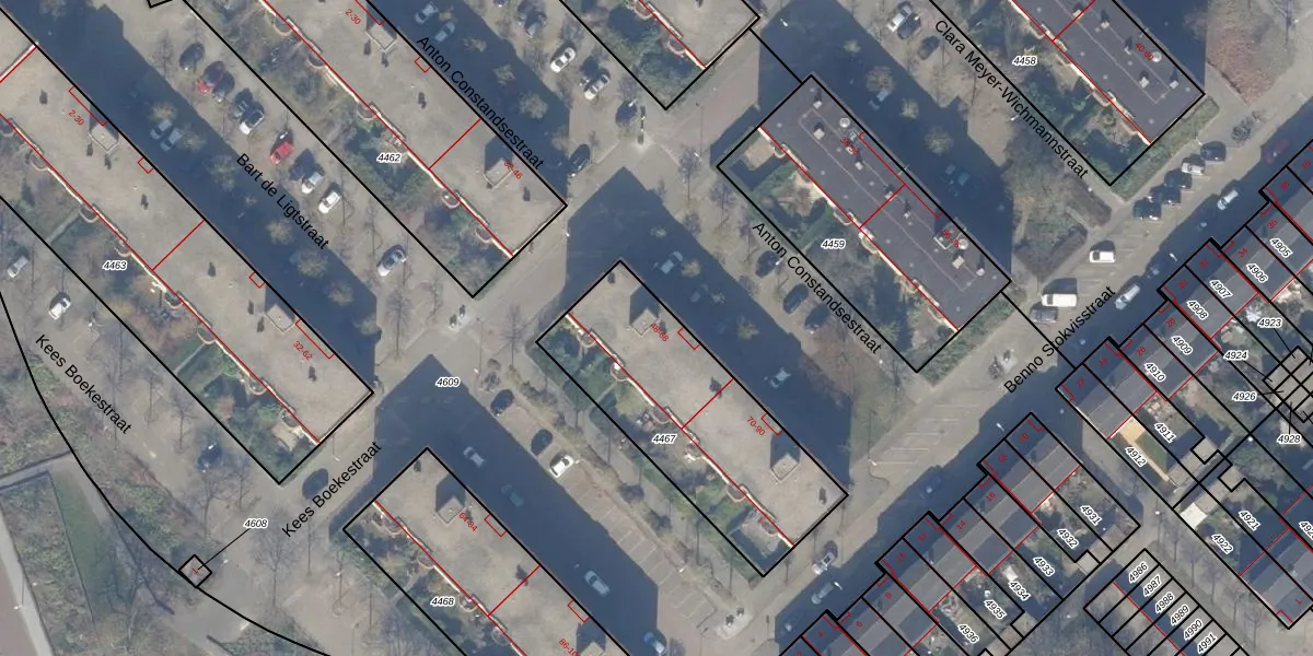 Het perceel waarop Anton Constandsestraat 52 staat heeft een oppervlakte van 887 m². Dit is een groot perceel. De perceeloppervlakte wordt geregistreerd door het Kadaster. Gedetailleerde informatie over de maten van dit perceel kunt u vinden in het rapport Kadastrale kaart met maatvoering van Anton Constandsestraat 52.