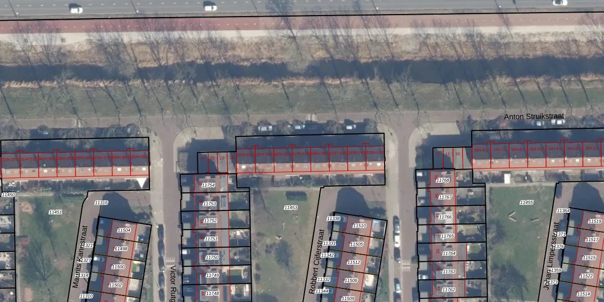 Het perceel waarop Anton Struikstraat 17-H staat heeft een oppervlakte van 1879 m². Dit is een zeer groot perceel. De perceeloppervlakte wordt geregistreerd door het Kadaster. Gedetailleerde informatie over de maten van dit perceel kunt u vinden in het rapport Kadastrale kaart met maatvoering van Anton Struikstraat 17-H.