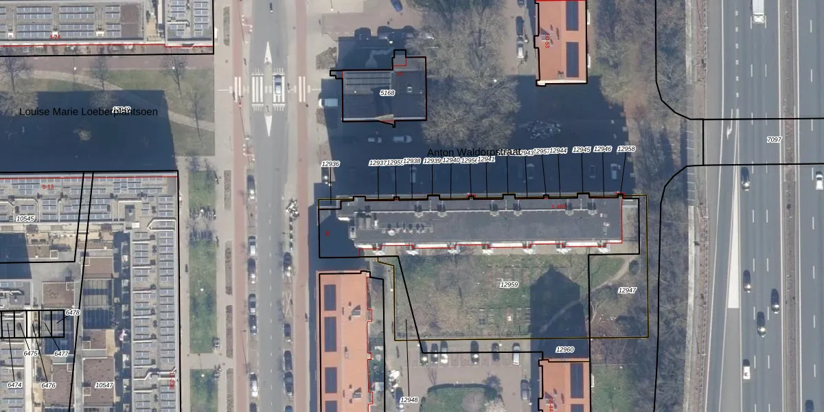 Het perceel waarop Anton Waldorpstraat 10-A staat heeft een oppervlakte van 1957 m². Dit is een zeer groot perceel. De perceeloppervlakte wordt geregistreerd door het Kadaster. Gedetailleerde informatie over de maten van dit perceel kunt u vinden in het rapport Kadastrale kaart met maatvoering van Anton Waldorpstraat 10-A.