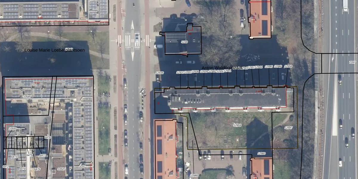 Het perceel waarop Anton Waldorpstraat 5-H staat heeft een oppervlakte van 1957 m². Dit is een zeer groot perceel. De perceeloppervlakte wordt geregistreerd door het Kadaster. Gedetailleerde informatie over de maten van dit perceel kunt u vinden in het rapport Kadastrale kaart met maatvoering van Anton Waldorpstraat 5-H.