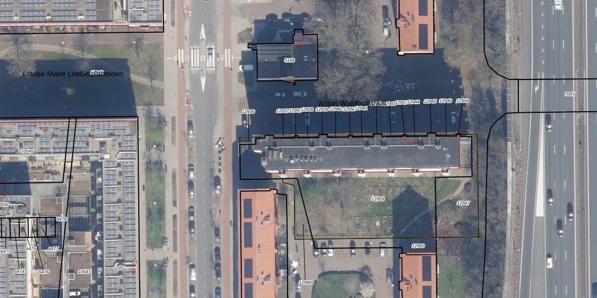 Het perceel waarop Anton Waldorpstraat 6 staat heeft een oppervlakte van 1957 m². Dit is een zeer groot perceel. De perceeloppervlakte wordt geregistreerd door het Kadaster. Gedetailleerde informatie over de maten van dit perceel kunt u vinden in het rapport Kadastrale kaart met maatvoering van Anton Waldorpstraat 6.