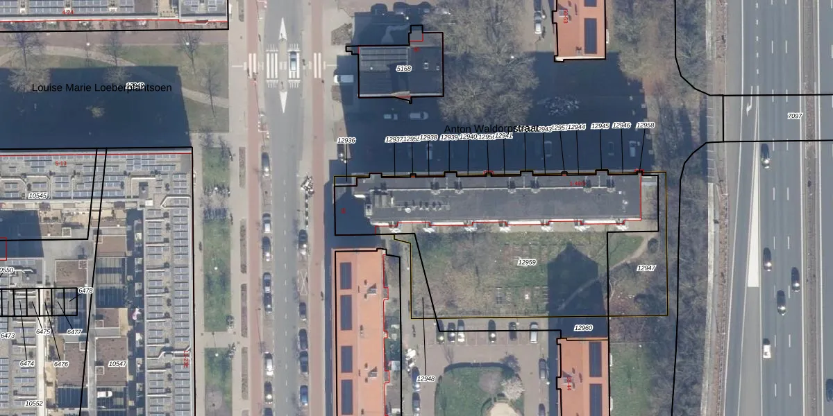 Het perceel waarop Anton Waldorpstraat 6-F staat heeft een oppervlakte van 1957 m². Dit is een zeer groot perceel. De perceeloppervlakte wordt geregistreerd door het Kadaster. Gedetailleerde informatie over de maten van dit perceel kunt u vinden in het rapport Kadastrale kaart met maatvoering van Anton Waldorpstraat 6-F.