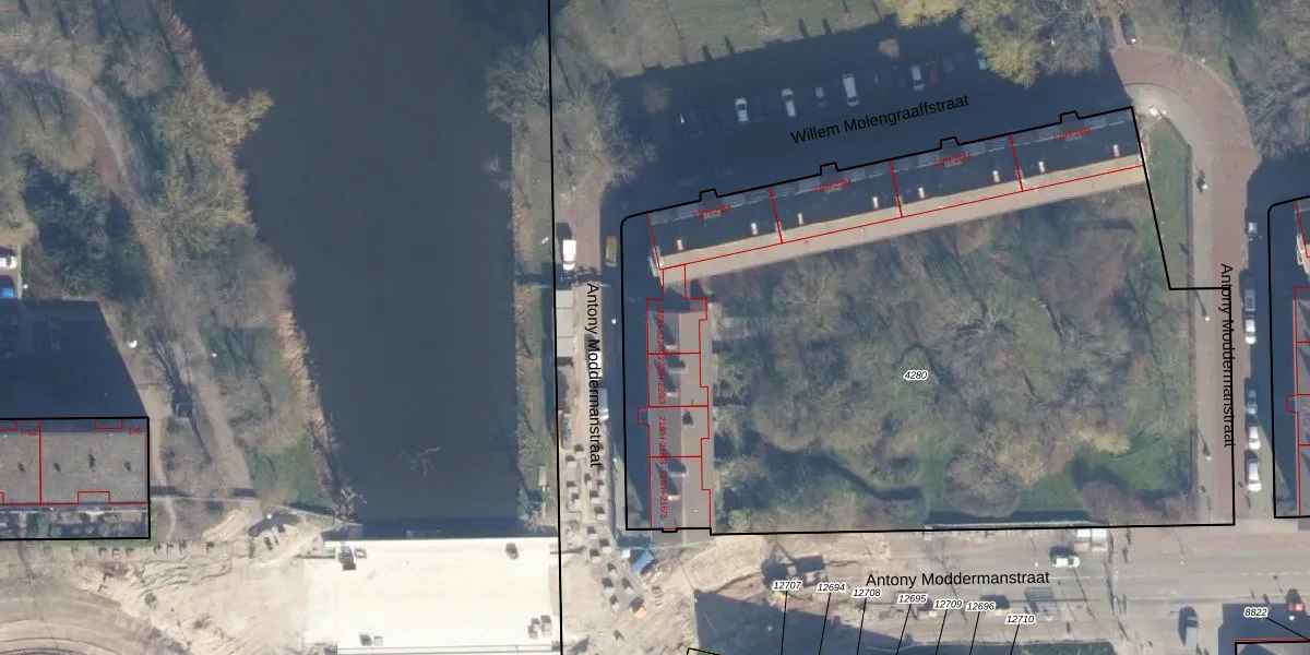 Het perceel waarop Antony Moddermanstraat 222-H staat heeft een oppervlakte van 4978 m². Dit is een zeer groot perceel. De perceeloppervlakte wordt geregistreerd door het Kadaster. Gedetailleerde informatie over de maten van dit perceel kunt u vinden in het rapport Kadastrale kaart met maatvoering van Antony Moddermanstraat 222-H.