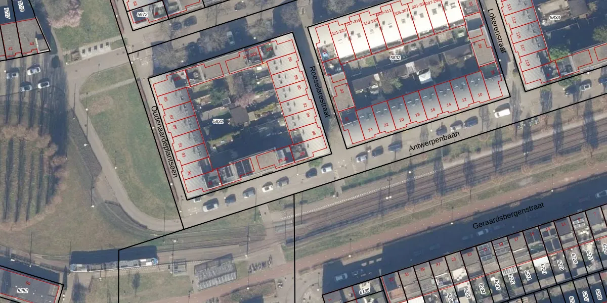 Antwerpenbaan 26 is gelegen op kadastraal perceel STN02E5831. Deze kadastrale aanduiding is uniek en wordt gebruikt door het Kadaster om eigendomsrechten en andere zakelijke rechten vast te leggen. Het perceel maakt onderdeel uit van de kadastrale gemeente Sloten Noord-Holland.