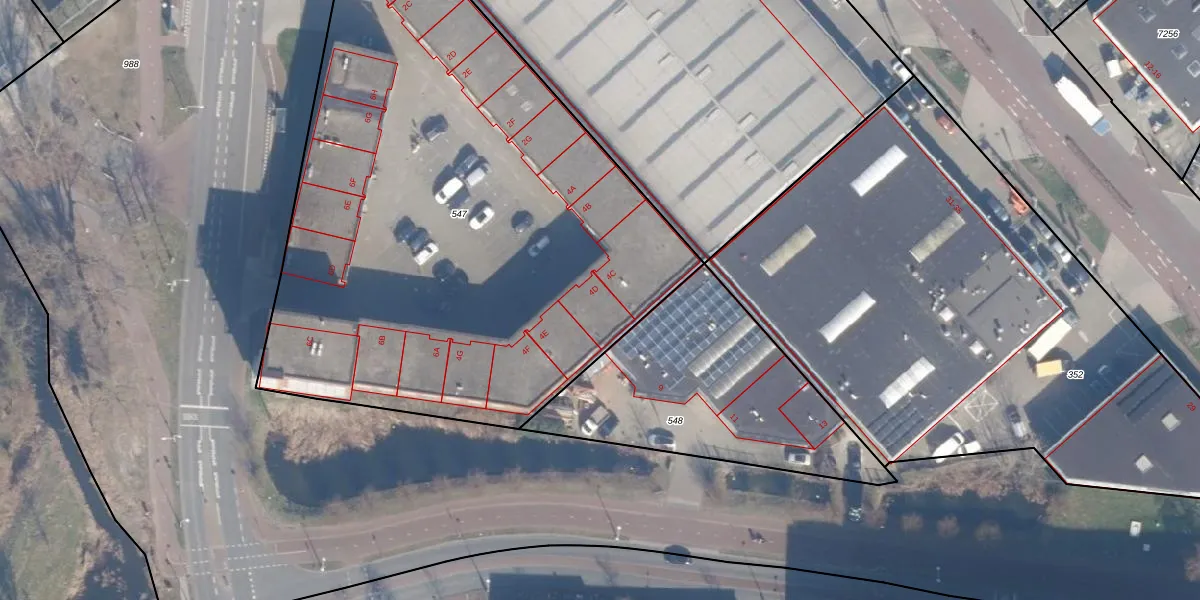 Het adres ligt op het perceel ASD29-AI-547, dat zich in de kadastrale gemeente Amsterdam bevindt. De gemiddelde perceelgrootte in Amsterdam is 1,3 ha. Dit perceel is kleiner: de perceeloppervlakte bedraagt 3720 m². De grootste perceeloppervlakte in de kadastrale gemeente is 24,4 ha. De kleinste oppervlakte bedraagt 2 m². Er zijn 22 adressen aanwezig op het perceel. De laatste wijziging in het de Basisregistratie Kadaster (BRK) was op 09-11-2006.