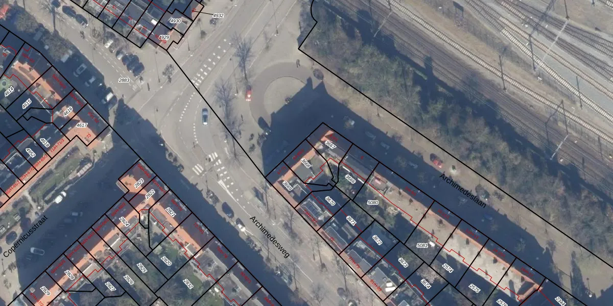 Het perceel waarop Archimedesweg 63 staat heeft een oppervlakte van 147 m². Dit is een middelgroot perceel. De perceeloppervlakte wordt geregistreerd door het Kadaster. Gedetailleerde informatie over de maten van dit perceel kunt u vinden in het rapport Kadastrale kaart met maatvoering van Archimedesweg 63.