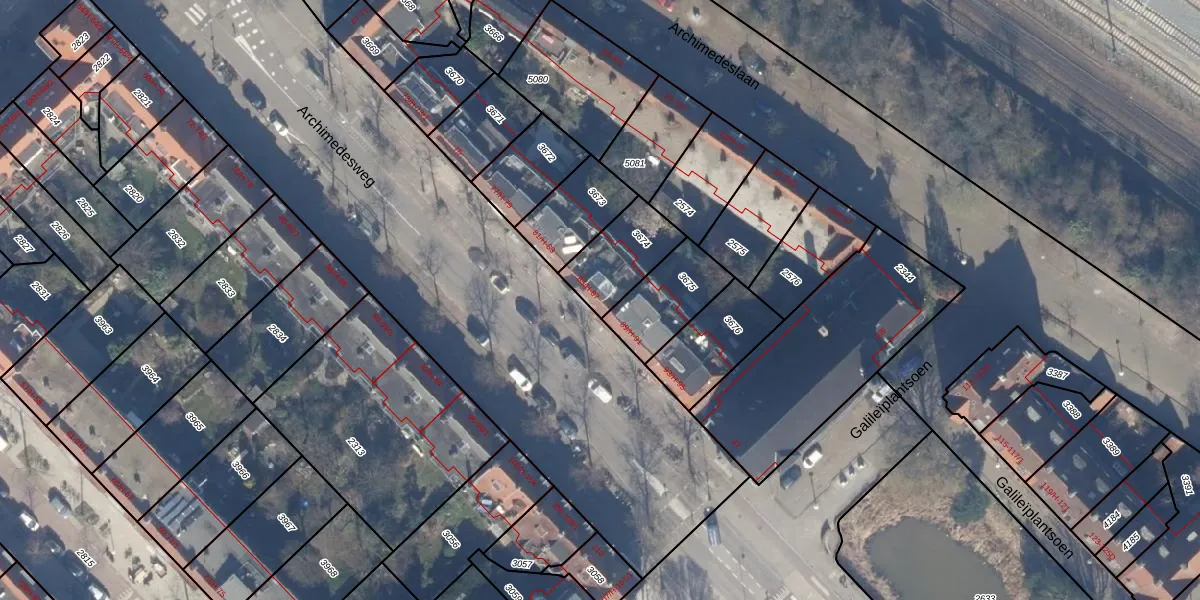 Het perceel waarop Archimedesweg 87 staat heeft een oppervlakte van 200 m². Dit is een middelgroot perceel. De perceeloppervlakte wordt geregistreerd door het Kadaster. Gedetailleerde informatie over de maten van dit perceel kunt u vinden in het rapport Kadastrale kaart met maatvoering van Archimedesweg 87.