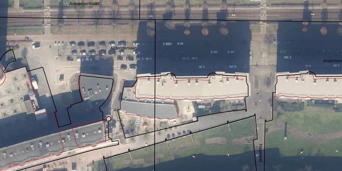 Het perceel waarop Ardennenlaan 117 staat heeft een oppervlakte van 1350 m². Dit is een zeer groot perceel. De perceeloppervlakte wordt geregistreerd door het Kadaster. Gedetailleerde informatie over de maten van dit perceel kunt u vinden in het rapport Kadastrale kaart met maatvoering van Ardennenlaan 117.