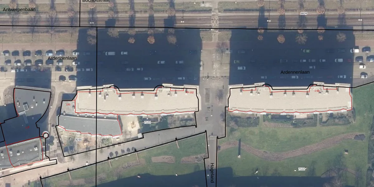 Het perceel waarop Ardennenlaan 69 staat heeft een oppervlakte van 1350 m². Dit is een zeer groot perceel. De perceeloppervlakte wordt geregistreerd door het Kadaster. Gedetailleerde informatie over de maten van dit perceel kunt u vinden in het rapport Kadastrale kaart met maatvoering van Ardennenlaan 69.