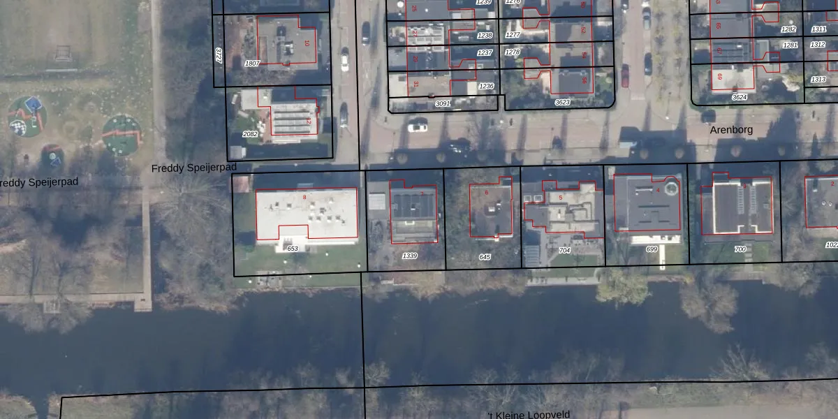 Gebruik de zoekbalk of klik op een perceel voor informatie over de adressen binnen dit perceel.
