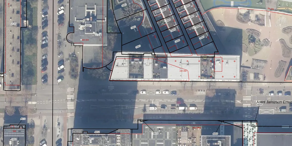 Het perceel waarop Arent Janszoon Ernststraat 252 staat heeft een oppervlakte van 1,1 ha. Dit is een zeer groot perceel. De perceeloppervlakte wordt geregistreerd door het Kadaster. Gedetailleerde informatie over de maten van dit perceel kunt u vinden in het rapport Kadastrale kaart met maatvoering van Arent Janszoon Ernststraat 252.
