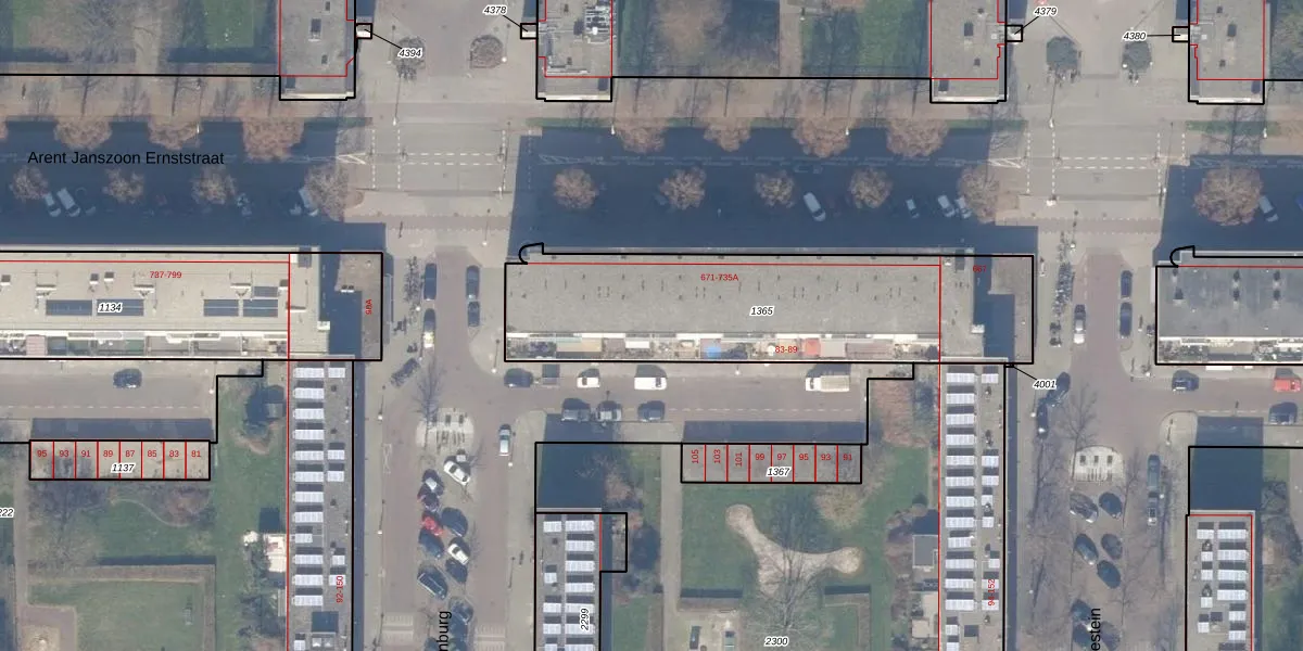 Arent Janszoon Ernststraat 721 is gelegen op kadastraal perceel ASD30AK1365. Deze kadastrale aanduiding is uniek en wordt gebruikt door het Kadaster om eigendomsrechten en andere zakelijke rechten vast te leggen. Het perceel maakt onderdeel uit van de kadastrale gemeente Amsterdam.