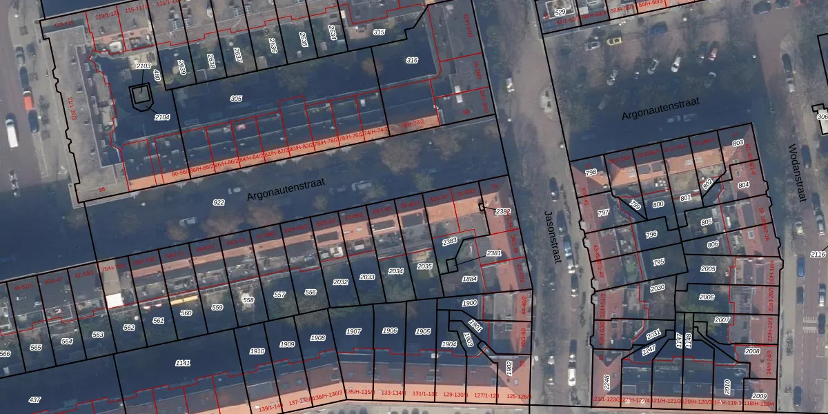 Het perceel waarop Argonautenstraat 39 staat heeft een oppervlakte van 174 m². Dit is een middelgroot perceel. De perceeloppervlakte wordt geregistreerd door het Kadaster. Gedetailleerde informatie over de maten van dit perceel kunt u vinden in het rapport Kadastrale kaart met maatvoering van Argonautenstraat 39.
