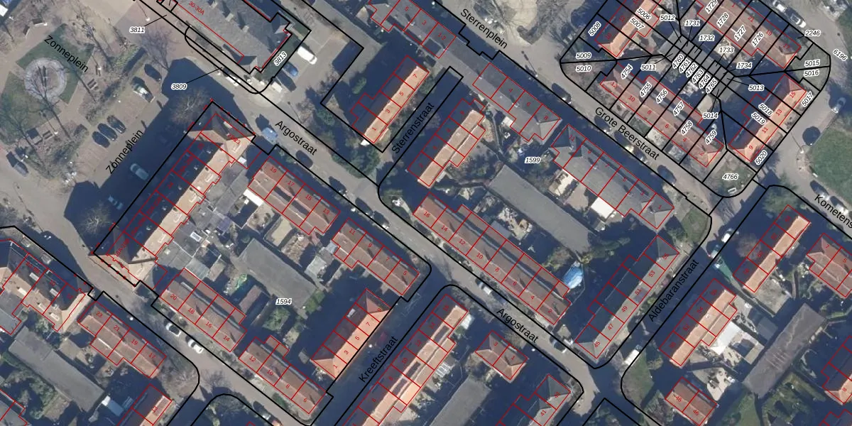 Het perceel waarop Argostraat 16 staat heeft een oppervlakte van 4499 m². Dit is een zeer groot perceel. De perceeloppervlakte wordt geregistreerd door het Kadaster. Gedetailleerde informatie over de maten van dit perceel kunt u vinden in het rapport Kadastrale kaart met maatvoering van Argostraat 16.