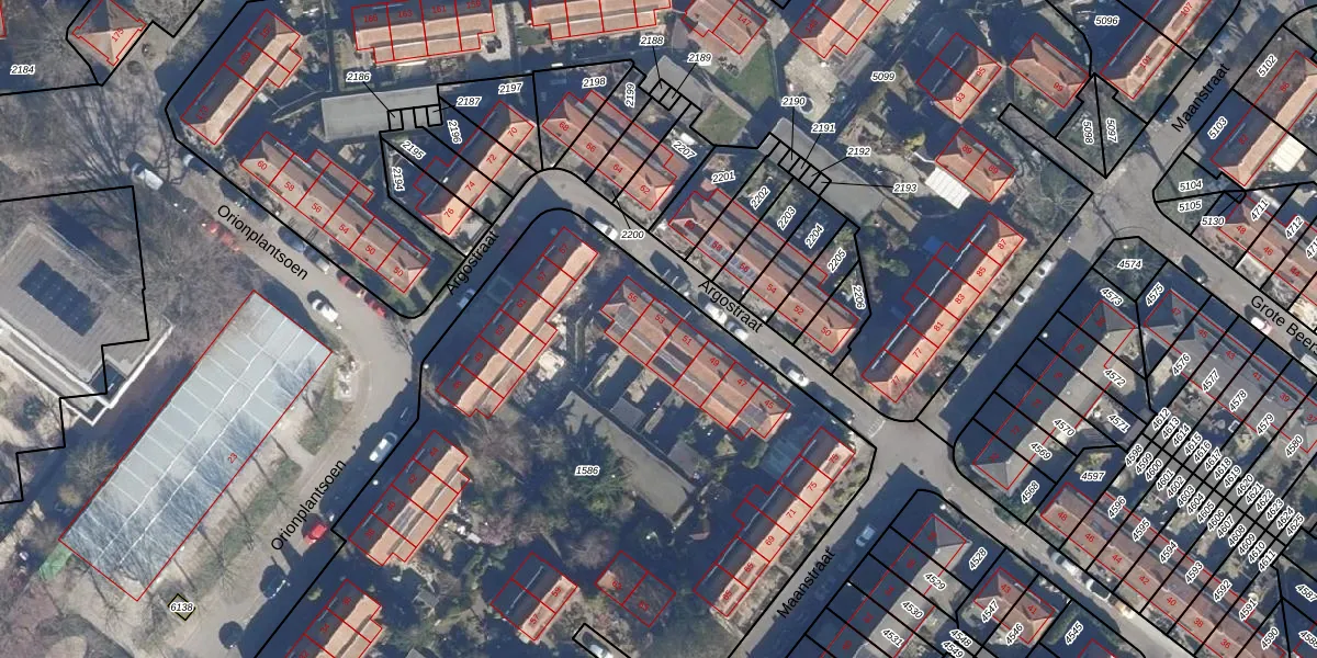 Het perceel waarop Argostraat 53 staat heeft een oppervlakte van 5317 m². Dit is een zeer groot perceel. De perceeloppervlakte wordt geregistreerd door het Kadaster. Gedetailleerde informatie over de maten van dit perceel kunt u vinden in het rapport Kadastrale kaart met maatvoering van Argostraat 53.