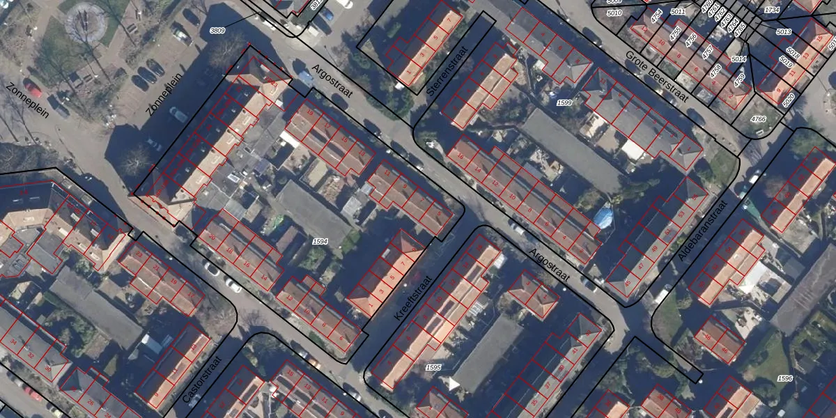 Het perceel waarop Argostraat 7 staat heeft een oppervlakte van 3034 m². Dit is een zeer groot perceel. De perceeloppervlakte wordt geregistreerd door het Kadaster. Gedetailleerde informatie over de maten van dit perceel kunt u vinden in het rapport Kadastrale kaart met maatvoering van Argostraat 7.