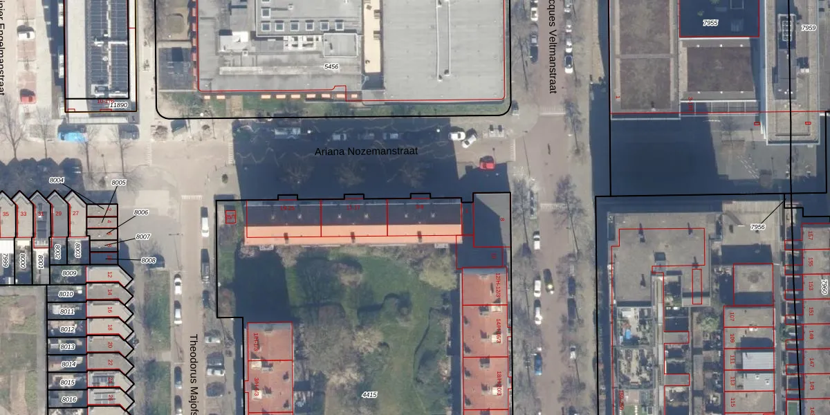 Het perceel waarop Ariana Nozemanstraat 7-3 staat heeft een oppervlakte van 6153 m². Dit is een zeer groot perceel. De perceeloppervlakte wordt geregistreerd door het Kadaster. Gedetailleerde informatie over de maten van dit perceel kunt u vinden in het rapport Kadastrale kaart met maatvoering van Ariana Nozemanstraat 7-3.