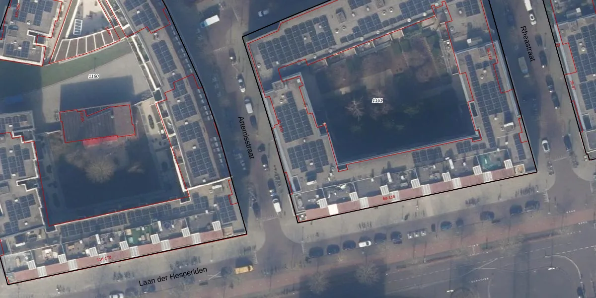 Het perceel waarop Artemisstraat 95 staat heeft een oppervlakte van 5945 m². Dit is een zeer groot perceel. De perceeloppervlakte wordt geregistreerd door het Kadaster. Gedetailleerde informatie over de maten van dit perceel kunt u vinden in het rapport Kadastrale kaart met maatvoering van Artemisstraat 95.