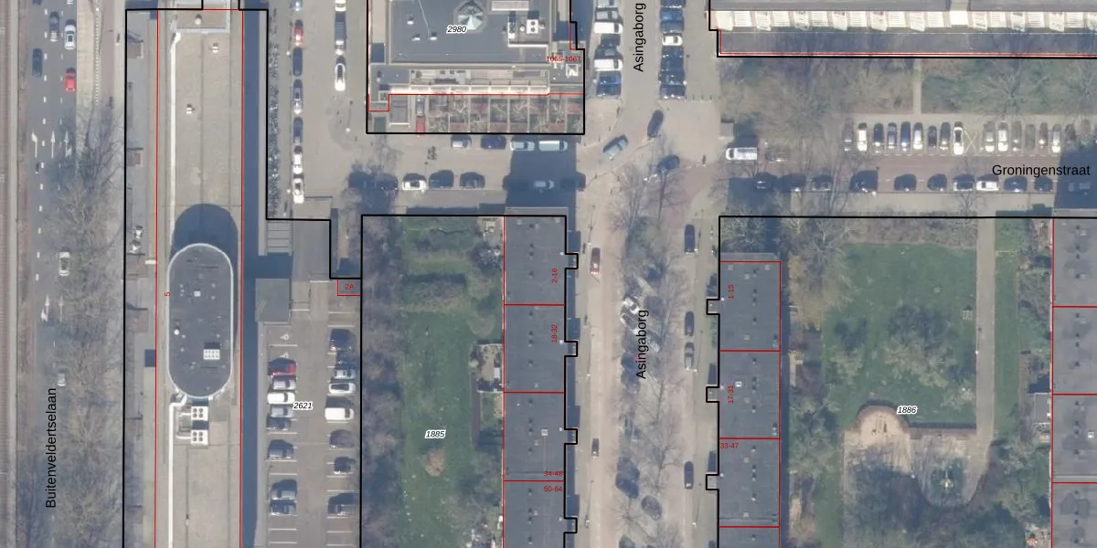 Het perceel waarop Asingaborg 10 staat heeft een oppervlakte van 3303 m². Dit is een zeer groot perceel. De perceeloppervlakte wordt geregistreerd door het Kadaster. Gedetailleerde informatie over de maten van dit perceel kunt u vinden in het rapport Kadastrale kaart met maatvoering van Asingaborg 10.