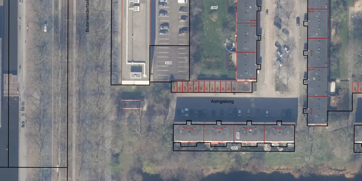 Het perceel waarop Asingaborg 102 staat heeft een oppervlakte van 3303 m². Dit is een zeer groot perceel. De perceeloppervlakte wordt geregistreerd door het Kadaster. Gedetailleerde informatie over de maten van dit perceel kunt u vinden in het rapport Kadastrale kaart met maatvoering van Asingaborg 102.