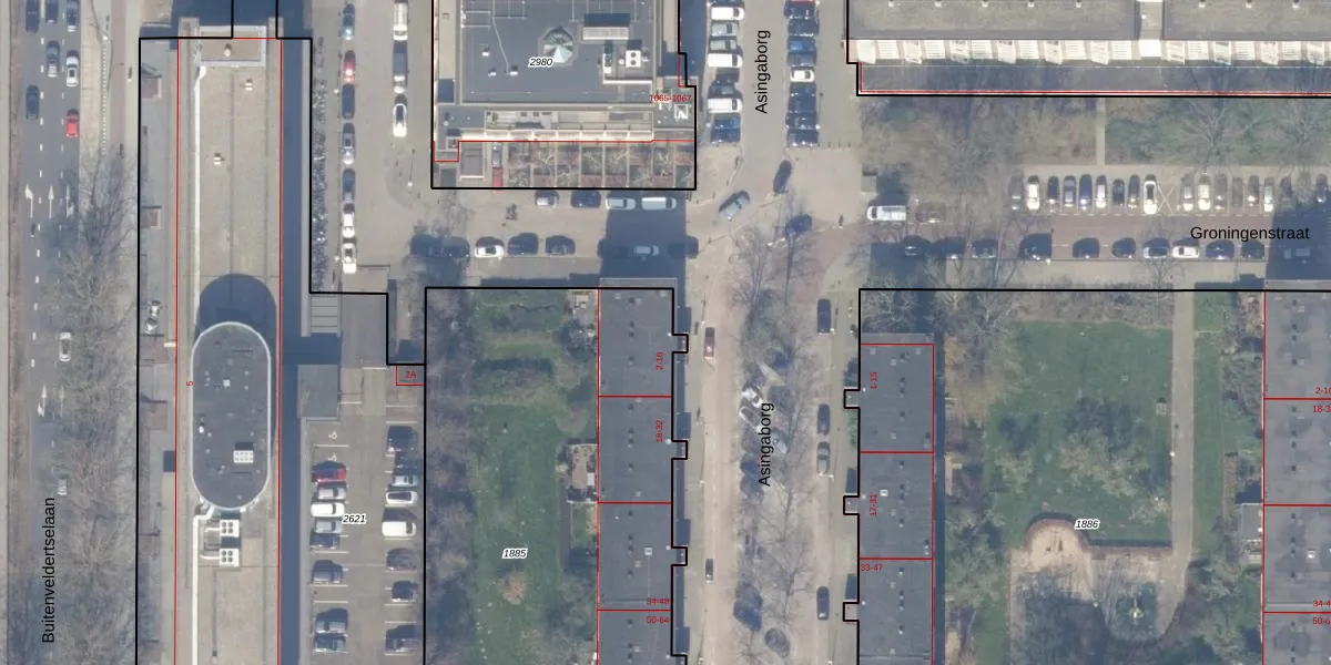 Het perceel waarop Asingaborg 2 staat heeft een oppervlakte van 3303 m². Dit is een zeer groot perceel. De perceeloppervlakte wordt geregistreerd door het Kadaster. Gedetailleerde informatie over de maten van dit perceel kunt u vinden in het rapport Kadastrale kaart met maatvoering van Asingaborg 2.