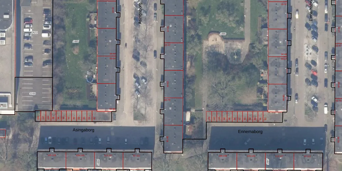 Het perceel waarop Asingaborg 57 staat heeft een oppervlakte van 6642 m². Dit is een zeer groot perceel. De perceeloppervlakte wordt geregistreerd door het Kadaster. Gedetailleerde informatie over de maten van dit perceel kunt u vinden in het rapport Kadastrale kaart met maatvoering van Asingaborg 57.