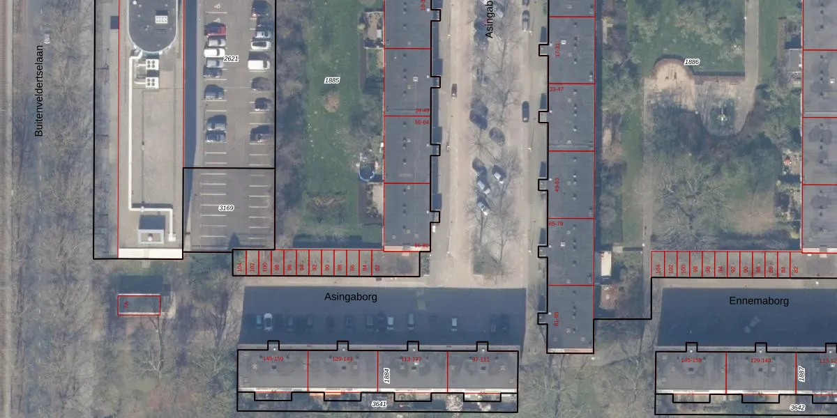 Het perceel waarop Asingaborg 68 staat heeft een oppervlakte van 3303 m². Dit is een zeer groot perceel. De perceeloppervlakte wordt geregistreerd door het Kadaster. Gedetailleerde informatie over de maten van dit perceel kunt u vinden in het rapport Kadastrale kaart met maatvoering van Asingaborg 68.