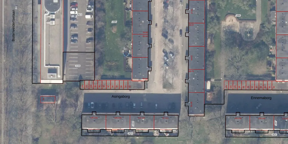 Het perceel waarop Asingaborg 74 staat heeft een oppervlakte van 3303 m². Dit is een zeer groot perceel. De perceeloppervlakte wordt geregistreerd door het Kadaster. Gedetailleerde informatie over de maten van dit perceel kunt u vinden in het rapport Kadastrale kaart met maatvoering van Asingaborg 74.