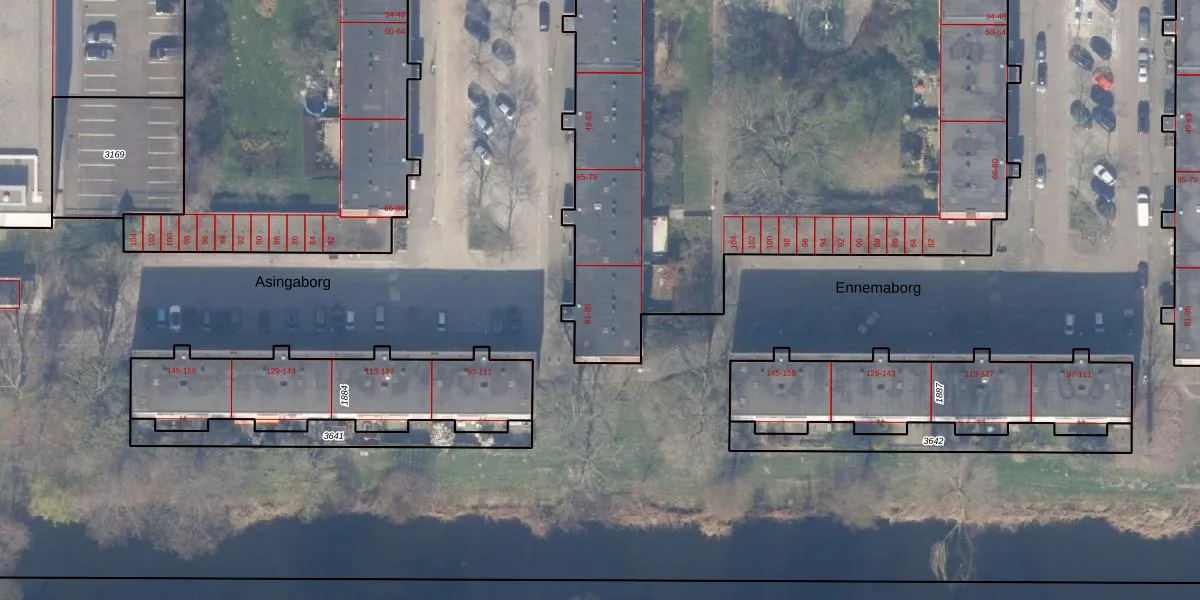 Het perceel waarop Asingaborg 83 staat heeft een oppervlakte van 6642 m². Dit is een zeer groot perceel. De perceeloppervlakte wordt geregistreerd door het Kadaster. Gedetailleerde informatie over de maten van dit perceel kunt u vinden in het rapport Kadastrale kaart met maatvoering van Asingaborg 83.