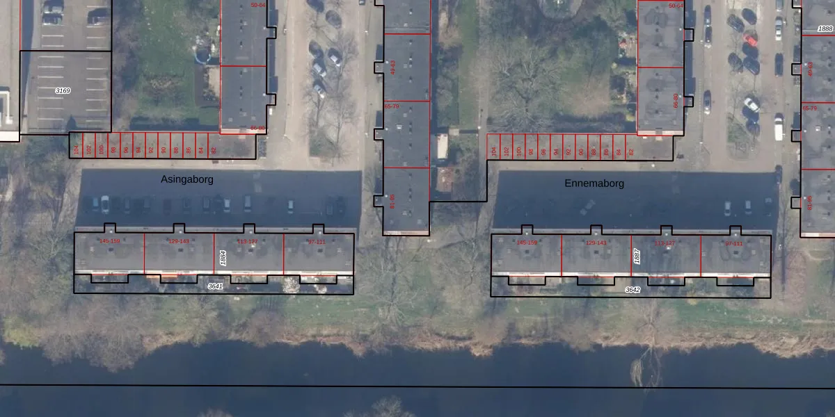 Het perceel waarop Asingaborg 93 staat heeft een oppervlakte van 6642 m². Dit is een zeer groot perceel. De perceeloppervlakte wordt geregistreerd door het Kadaster. Gedetailleerde informatie over de maten van dit perceel kunt u vinden in het rapport Kadastrale kaart met maatvoering van Asingaborg 93.