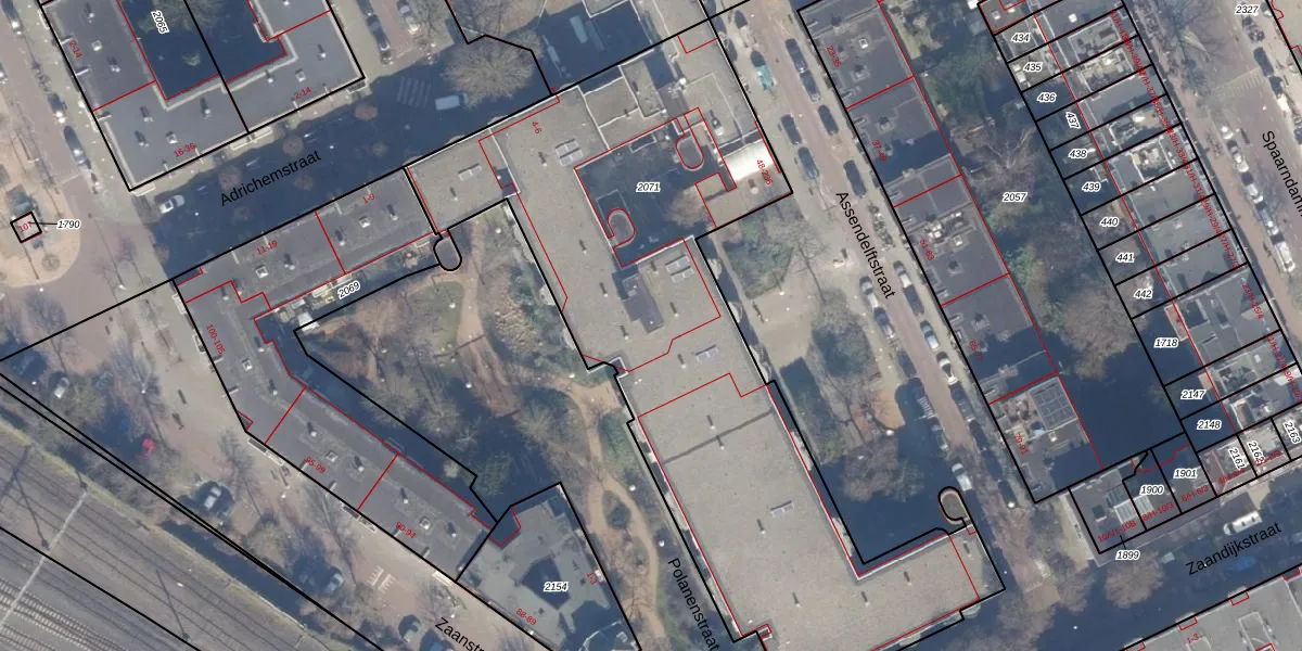 Het perceel waarop Assendelftstraat 106 staat heeft een oppervlakte van 3164 m². Dit is een zeer groot perceel. De perceeloppervlakte wordt geregistreerd door het Kadaster. Gedetailleerde informatie over de maten van dit perceel kunt u vinden in het rapport Kadastrale kaart met maatvoering van Assendelftstraat 106.