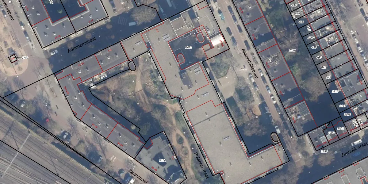 Assendelftstraat 114 is gelegen op kadastraal perceel ASD20X2071. Deze kadastrale aanduiding is uniek en wordt gebruikt door het Kadaster om eigendomsrechten en andere zakelijke rechten vast te leggen. Het perceel maakt onderdeel uit van de kadastrale gemeente Amsterdam.