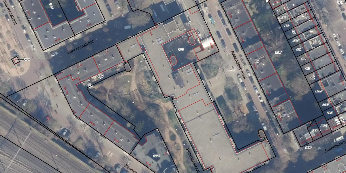 Het perceel waarop Assendelftstraat 156 staat heeft een oppervlakte van 3164 m². Dit is een zeer groot perceel. De perceeloppervlakte wordt geregistreerd door het Kadaster. Gedetailleerde informatie over de maten van dit perceel kunt u vinden in het rapport Kadastrale kaart met maatvoering van Assendelftstraat 156.