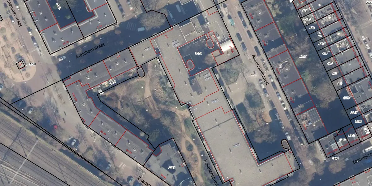 Assendelftstraat 182 is gelegen op kadastraal perceel ASD20X2071. Deze kadastrale aanduiding is uniek en wordt gebruikt door het Kadaster om eigendomsrechten en andere zakelijke rechten vast te leggen. Het perceel maakt onderdeel uit van de kadastrale gemeente Amsterdam.