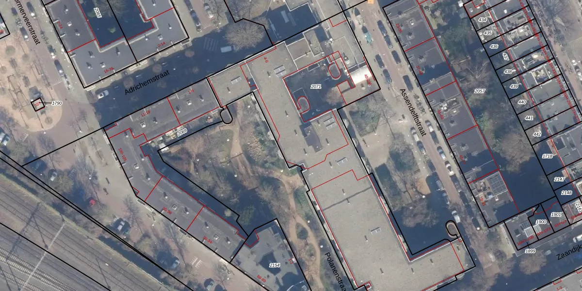 Assendelftstraat 216 is gelegen op kadastraal perceel ASD20X2071. Deze kadastrale aanduiding is uniek en wordt gebruikt door het Kadaster om eigendomsrechten en andere zakelijke rechten vast te leggen. Het perceel maakt onderdeel uit van de kadastrale gemeente Amsterdam.
