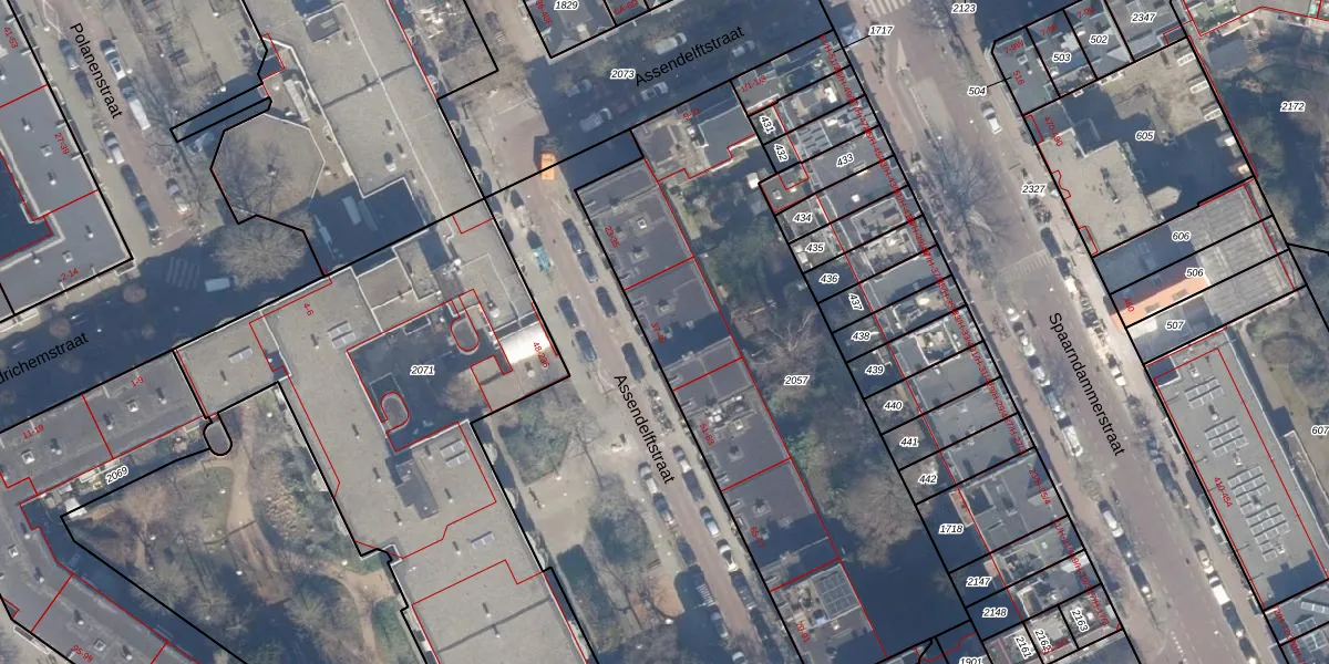 Assendelftstraat 43 is gelegen op kadastraal perceel ASD20X2057. Deze kadastrale aanduiding is uniek en wordt gebruikt door het Kadaster om eigendomsrechten en andere zakelijke rechten vast te leggen. Het perceel maakt onderdeel uit van de kadastrale gemeente Amsterdam.