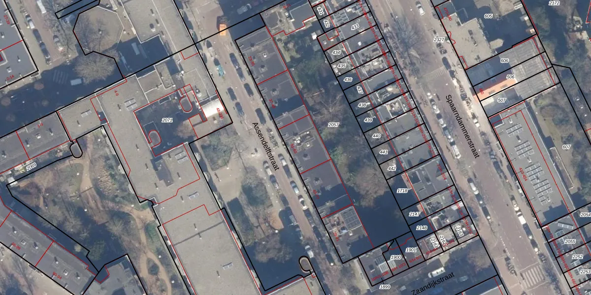 Assendelftstraat 59 is gelegen op kadastraal perceel ASD20X2057. Deze kadastrale aanduiding is uniek en wordt gebruikt door het Kadaster om eigendomsrechten en andere zakelijke rechten vast te leggen. Het perceel maakt onderdeel uit van de kadastrale gemeente Amsterdam.